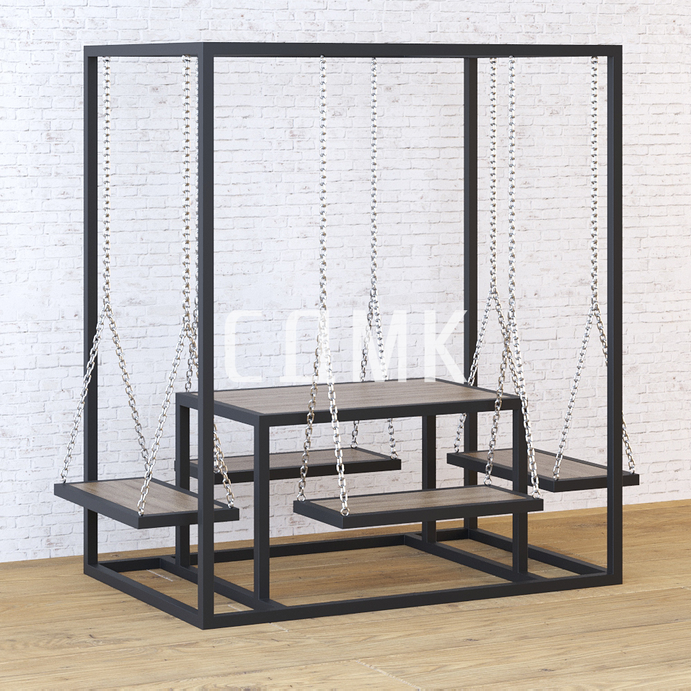 Этот комплект уличной мебели украсит ваше придомовое пространство и станет отличным местом для отдыха с друзьями или семьей. Он состоит из столика в минималистичном дизайне в сочетании с четырьмя подвесными скамейками. Такой комплект уличной лофт-мебели станет прекрасным украшением вашего участка и придаст ему стильный и современный облик. Купить мебель лофт в Санкт-Петербурге вы можете на нашем сайте через корзину или заказать по телефону.
