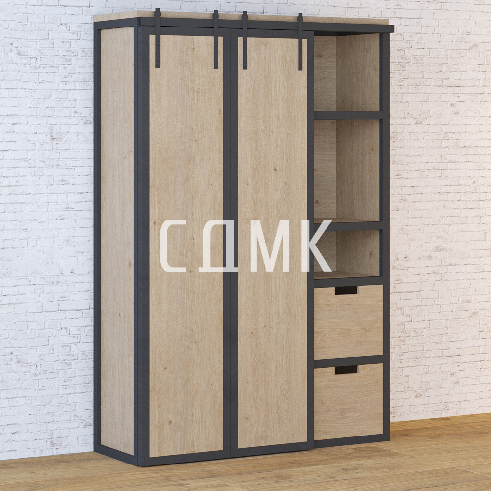 Шкаф в стиле лофт станет отличным украшением вашего интерьера. Он придаст ему современный облик, добавит уюта и комфорта. Этот шкаф состоит из основного отделения, двух ящиков и трех полок. В нем вы сможете с удобством разместить ваши вещи или добавить дополнительное оформление для вашего помещения. Его размеры 60*150*200 см. Купить мебель лофт в Санкт-Петербурге вы можете на нашем сайте через корзину или заказать по телефону.