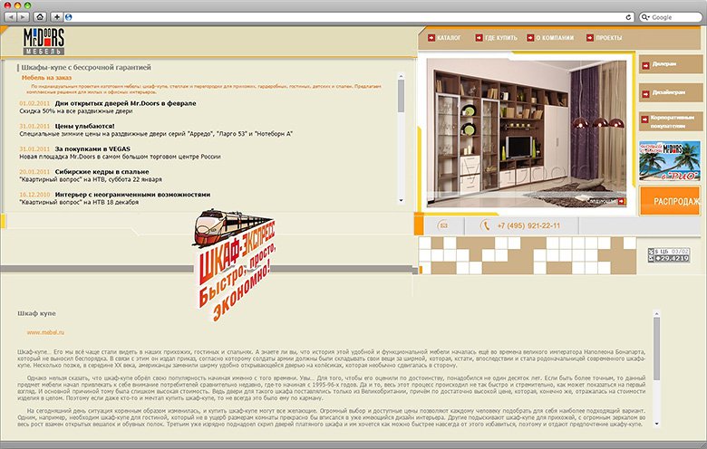 На дворе 2011 год, а официальный сайт лидера рынка корпусной мебели на заказ — компании Mr.Doors — просто полный трэш и угар